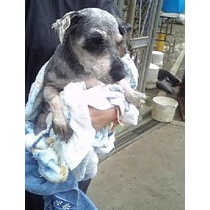 このシュナウザーも 脇腹を 掻きつづけ、 血だらけになっていたので 里親会スタッフが引き取り 堀病院さんへ スタッフも 一刻も早く綺麗にして上げたいと、休み無しでシャンプーをしたり掃除をしたり 懸命に動いてくれ助かりました 優しさと行動力のある すばらしい仲 ...