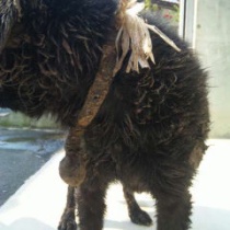 頭の先から尻尾まで、全身が糞尿にまみれています、 糞尿の中で  何年も寝ていたのでしょう、  こんな飼い方をするなら 飼わないで欲しい、 これは、動物虐待になるのだと近所のかたも認識し 、 動物への虐待を見かけたら 保健所や 動物指導センターに 指導を依 ...