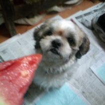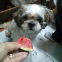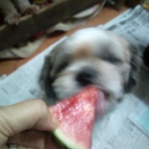 冷たくって  甘くって美味しいね〜、、、  しおらしい アンズちゃんです、(^-^)  可愛いね、 ...