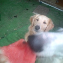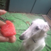 あれはノエルのスイカでしょ〜 、 順番よ、 セリーナはこれでしょ!、   皮を食べない セリーナです。(^^;) ...