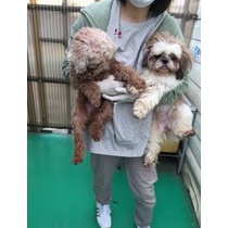 このプードル君も 足が悪いと言う事ですが 歩かせてみたら普通に歩けます、 足は、何とか なりますので とりあえずトリミングですね、 綺麗になって 幸せを探します。 ご期待 下さい。(*^^*) ...