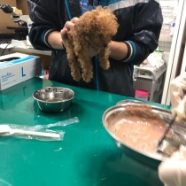 レスキューの日なので 先生が待っていて 診察をして下さっていて助かりました。このプードルの赤ちゃんは  食道狭窄の疑いでした、自分で食べられません。2カ月の男の子です。下はヨーキー  2カ月前、380グラムしかありません肺雑音、水頭症、黒いプードルは  食道憩室。 ...