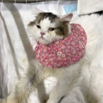 FIPと言う 難病と戦ったいるキリちゃんに 可愛いよだれかけをプレゼントされました。😸自分では殆ど食べられ無くなったキリちゃんに毎日何回か シリンジで 栄養食を飲ませています。その時 胸に 流動食が垂れて汚れてしまうからと 手作りよだれかけを作って下さったのです。 ...