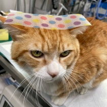 チャト君は交通事故の後遺症で自力で排尿ができないため カテーテルを使って排尿をしています。頭の上のおまじないが良く効いて とても良い子です、😅👌今回は 少し血が混じっていました、お薬がでています。結構溜まっていました、、、下はティファニーちゃんのお夜食で ...