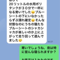 これは昨夜のやり取りです、屋根は穴だらけ 一部にブルーシートを貼り寒さの中猫達を必死で守っています、周りには亡くなってしまった方がまだ沢山崩壊した家の中に残されていると思います、珠洲市は、再起不能と言われているくらい酷い惨状です。下は里親様が、川越で自宅 ...