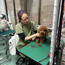 お姉さんが最後のトリミングをしてくれました。私ね、シェルターに長く居たから、ここの子かと思っていたのよ、そうしたら優しい家族が見つかったって言われました。ちょっと寂しいけど 私が出たらまた次の子が助けて貰えるから、、、🐶💓🐶ジャスミンは小さいから ...