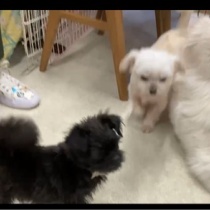 お庭が人工芝で気持ち良さそうですね、足も汚れないし熱くもなりません。先輩にオチッコの仕方も教えてもらっています。👌👌👌下はりんちゃん、ママさんがいろいろなカットを試してくれて愛情いっぱいです❤️‍🩹幸せそうな画像です❤️‍🩹😆✌️下は 日曜日のたん ...