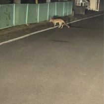 時々シェルターに来る子ギツネさんが 昨夜は公園の前に居ました。痩せていますね、、、ご飯を探しているのかもしれません。シェルターに来てくれたら猫ちゃんのご飯があるのですが、、、以前は親子でいたのですが親は居なくなりました。車に轢かれていなければ良いので ...