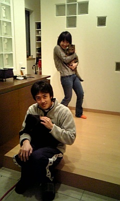 玄関で 猫ちゃんとご対面、 今日からよろしくね (^O^)/