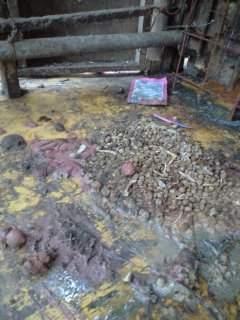 糞尿で 床は埋めつくされ 腐った餌と糞尿には 夥しい ウジ、、