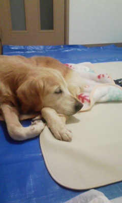 0698ae8c.jpg目が見えないからか ペットシーツをひくと 噛んでしまい、おふとんをひいても 口に入れてしまうので ブルーシートに 毛布をひいて下さったそうです