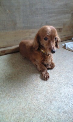 ブリーダーからの放棄かと思われる 痩せて小さな ダックスです、、、