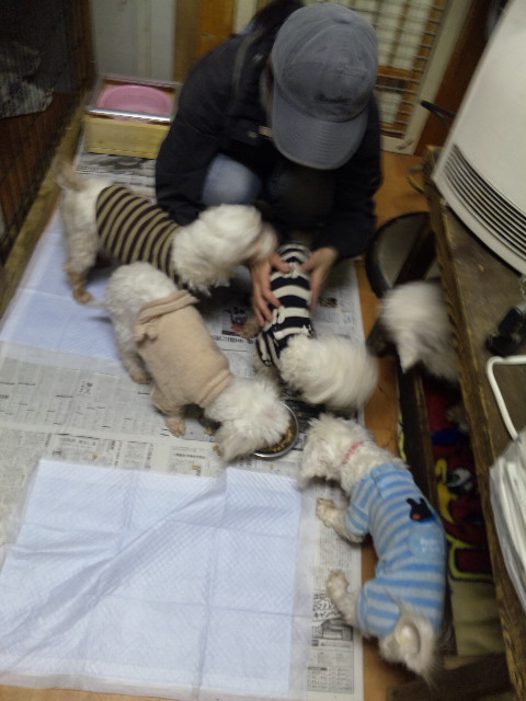 私達が あちこち飛び回っている間も、 遅くまでお散歩隊のスタッフが 犬達の世話をして下さっています、