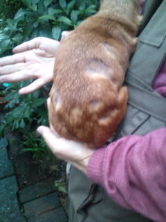 皮膚病であちこち禿げた背中、