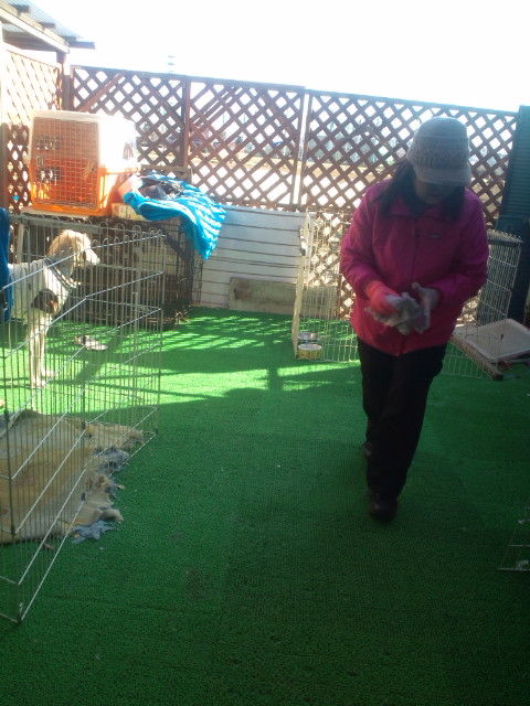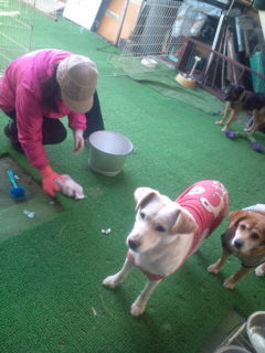 毎日犬達が汚す人工芝も 皆さんがきれいに ブラシで掃除して ハイターで消毒してくれています