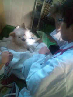 救急できてくれる病院を探して 往診してもらいましたが 片目から血が出ていて 詳しい診断は病院で 麻酔をしてみる事になりました