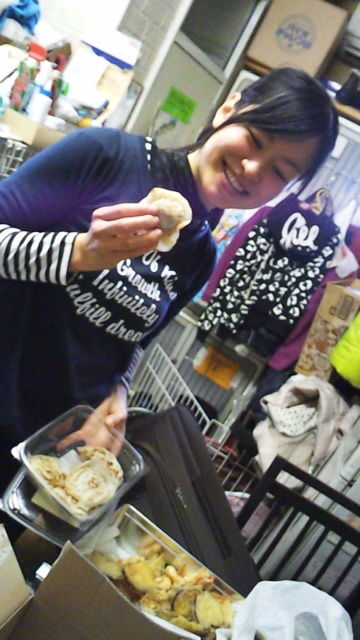 今日は 犬のマーヤのママさんが 美味しい手作り野菜ギョーザと 野菜天ぷら、しゃけと梅の大きなおにぎりを 持ってお手伝いに来てくれました