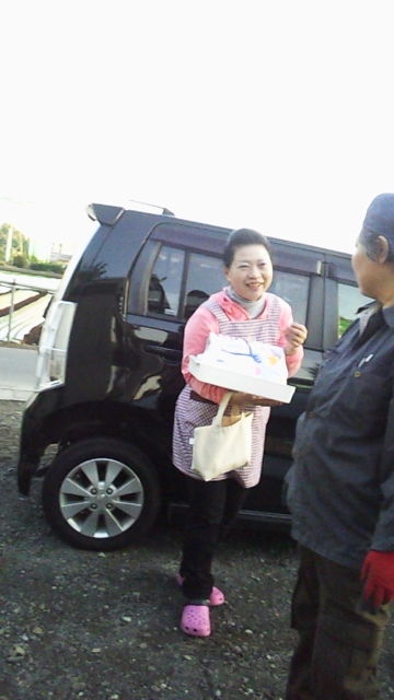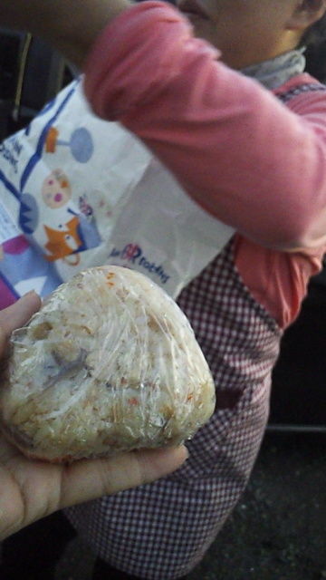 今日は お散歩隊のスタッフが 温かい炊き込みご飯のおにぎりを持って来てくれました