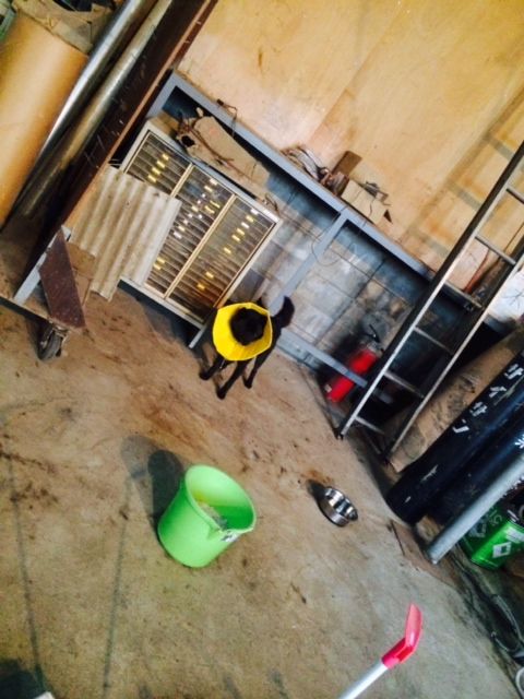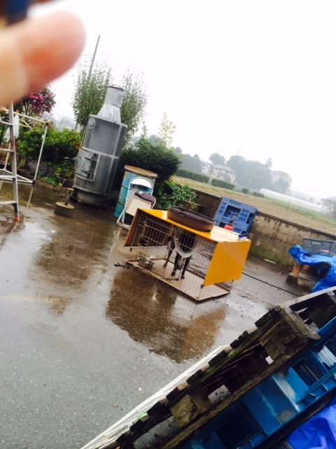 外のケージは 雨が吹き込み 濡れて居ます、