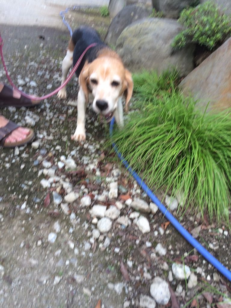 今日初めて ケージから出て 外に出た ビーグルちゃん 、
