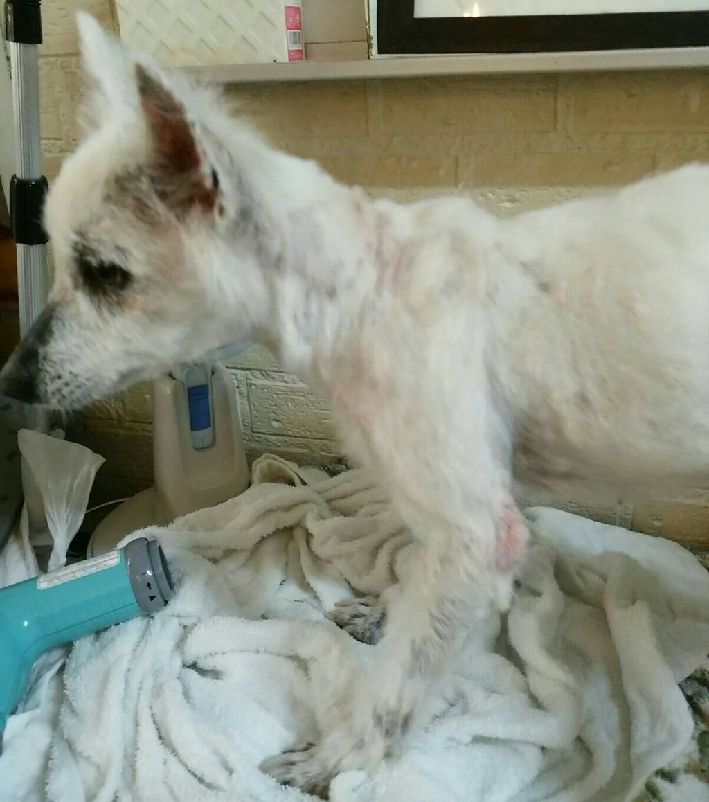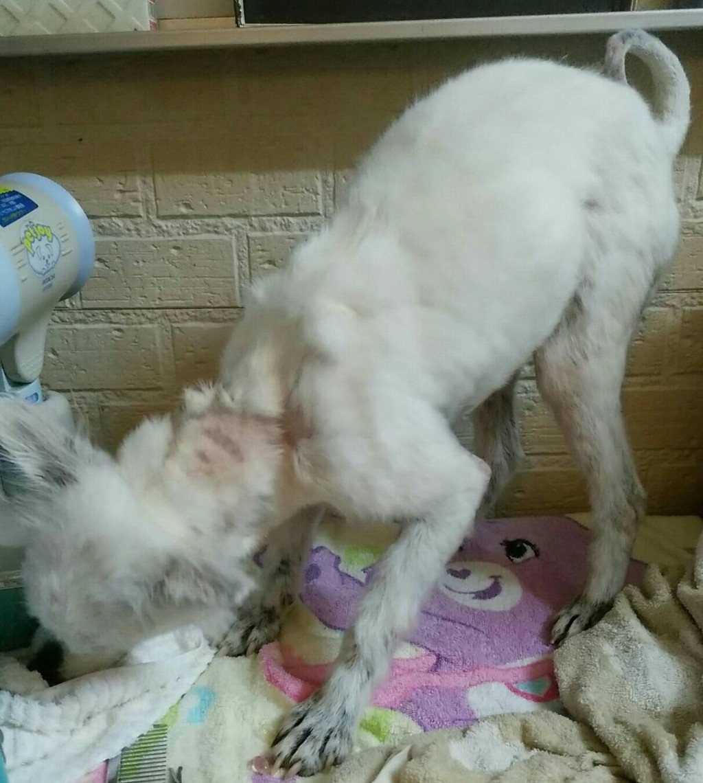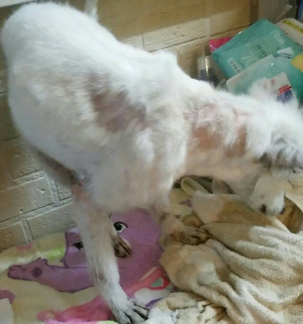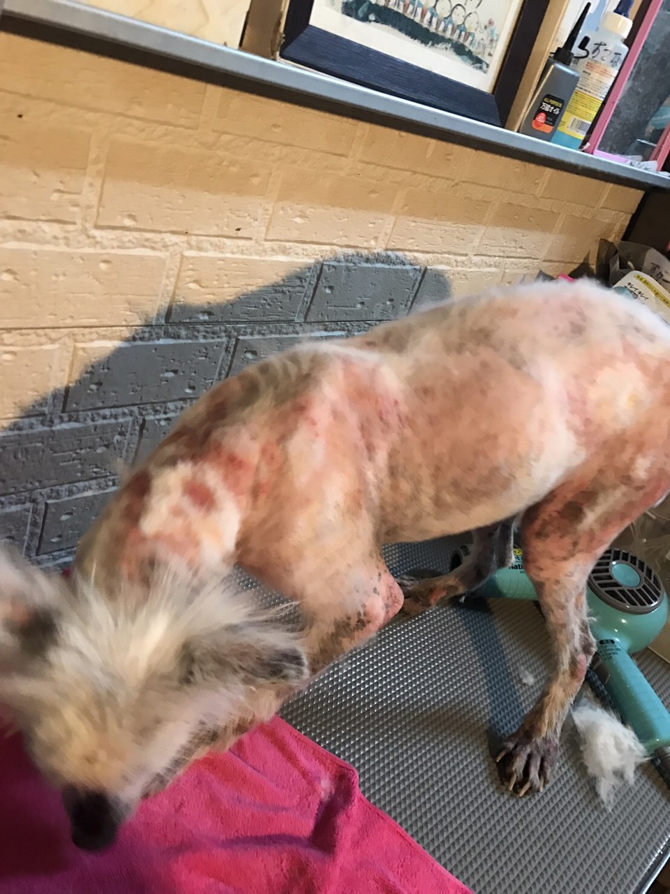 先月 クリスマスイブに レスキューして来た 酷い皮膚病のスピッツイブちゃんですが スタッフさんの 薬浴と治療で こんなに見違えて来ました、