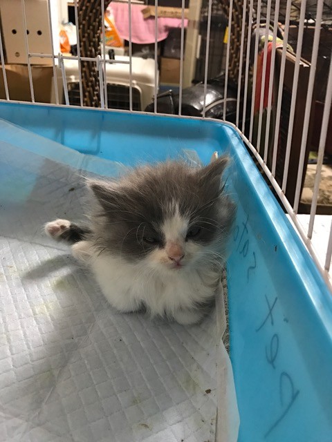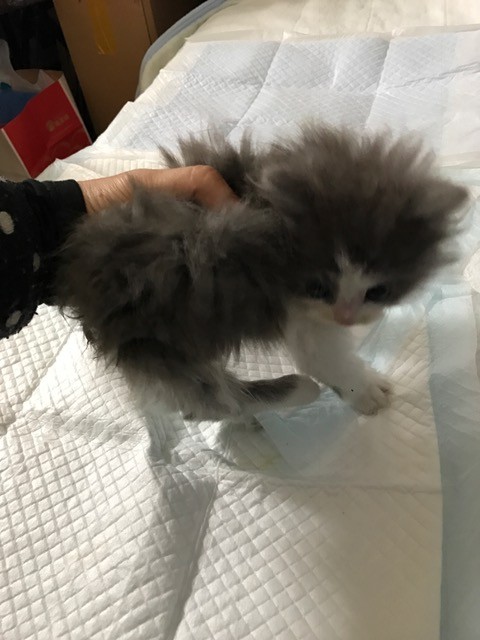子猫は 後ろ足の奇形で 尻尾もありません、