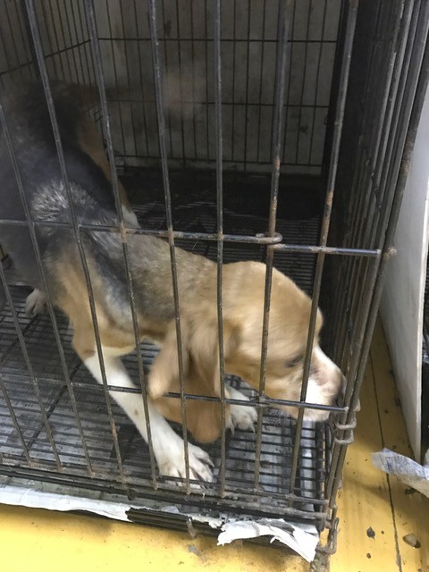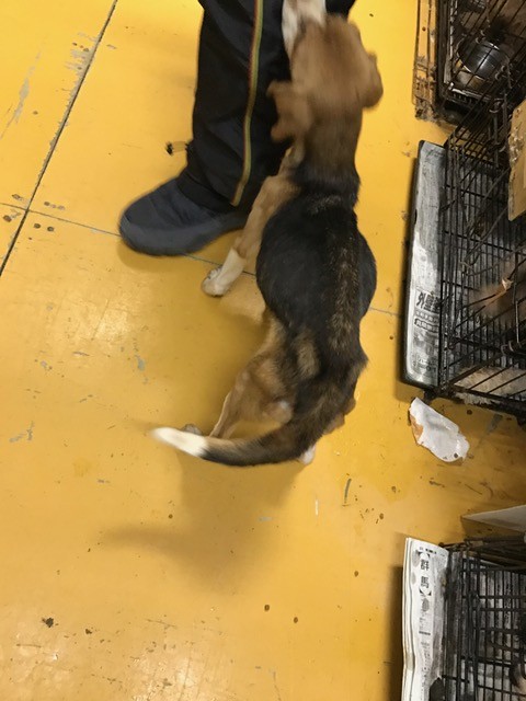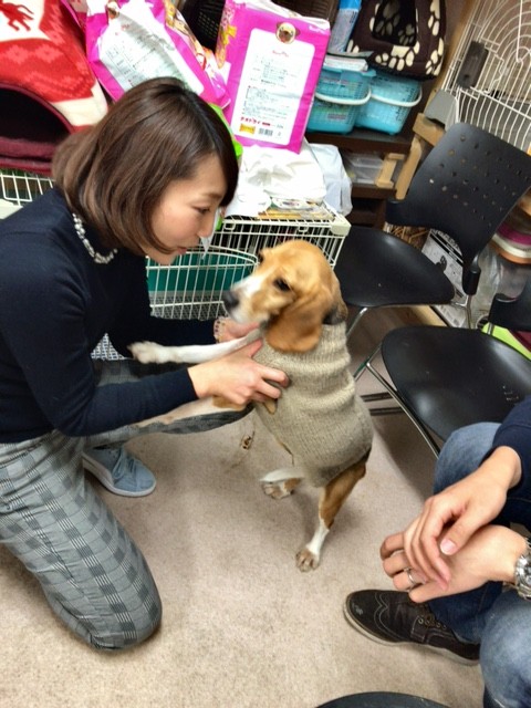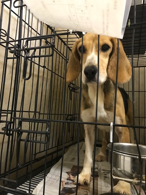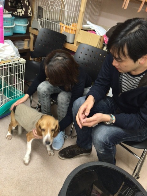 二匹いる ビーグルのうち 上のケージにいた 女の子にお見合いが入り 昨日板橋会場にてお見合いをして戴きました(^_^)