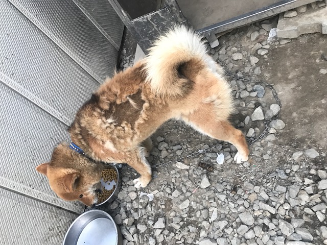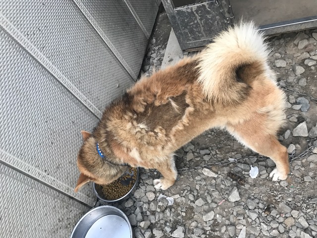 外に繋がれ寒い冬を越して来たのですが、毛が生え変わりの時期で ボサボサです、