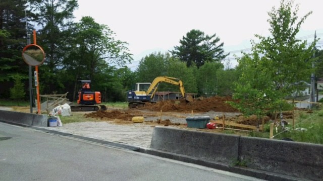 今日、様子を見に行ったら、基礎工事の準備が始まっていました。