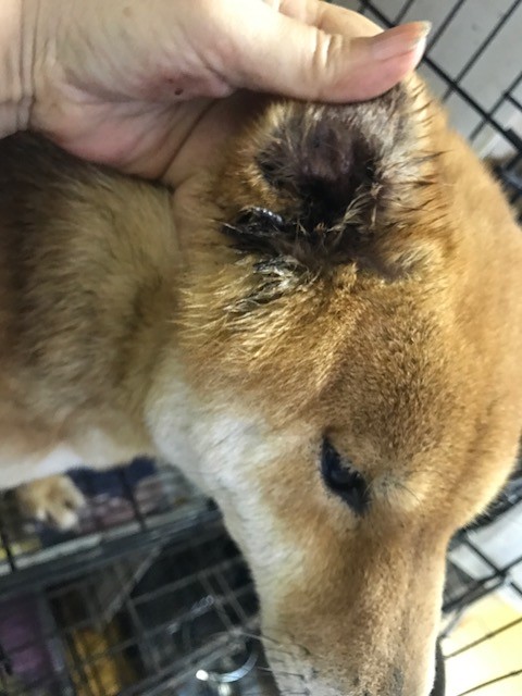 繁殖場の 廃業で放棄になり保護になりましたが 片耳からは真っ黒な血と膿が流れ出して頭は傾いて居ました、