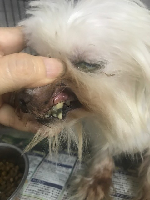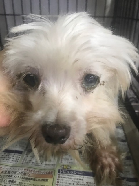 このマルチーズも ガリガリボロボロ、栄養失調から目やにも酷いです、