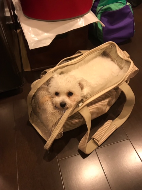 帰り支度をしているとソワソワですが、バッグを床に置いてやると自分で入り落ち着いて待っています。