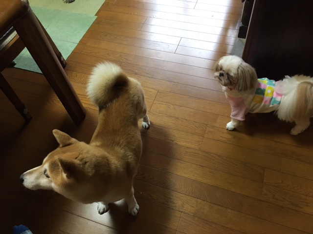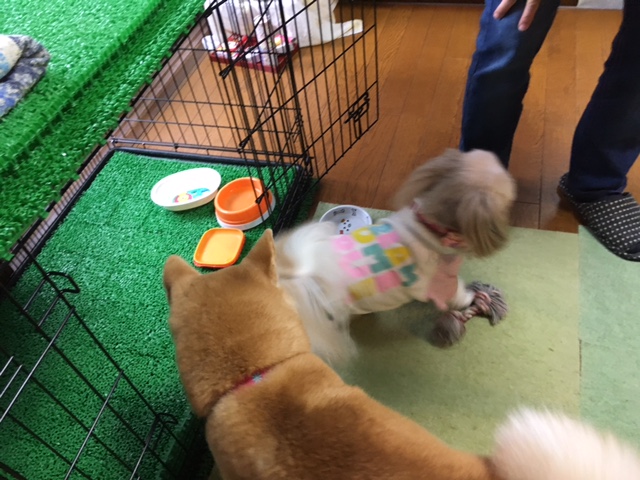 先日ペコ(旧:シンディ)を連れて、さつき(旧:メイ)ちゃんのお家にお邪魔しました。