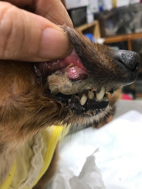 歯を見て下さい 、こんな歯石でご飯なんか食べられないです、