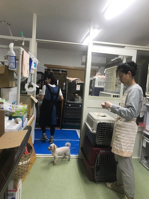 来たばかりのペキちゃんは ビビリで 逃げ回ります、