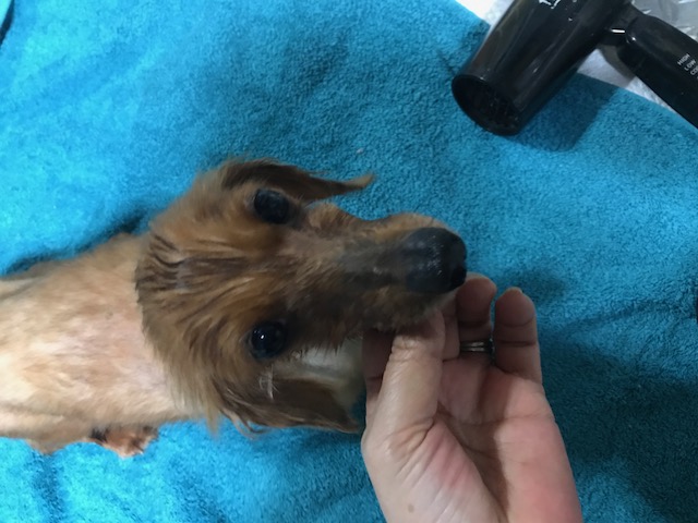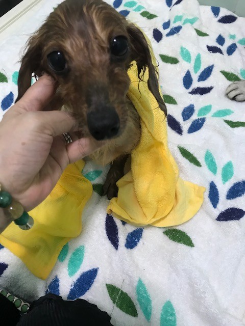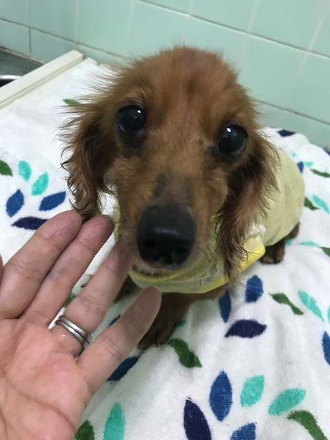 身体は 糞尿で汚れ ボロボロでしたが、小さな可愛らしいダックスの女の子です。