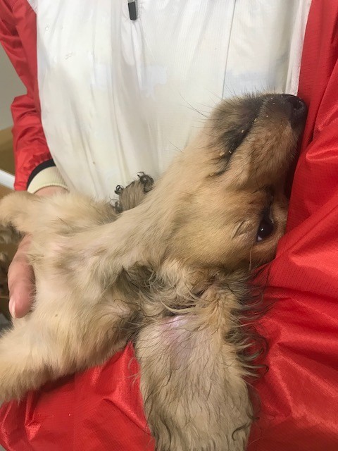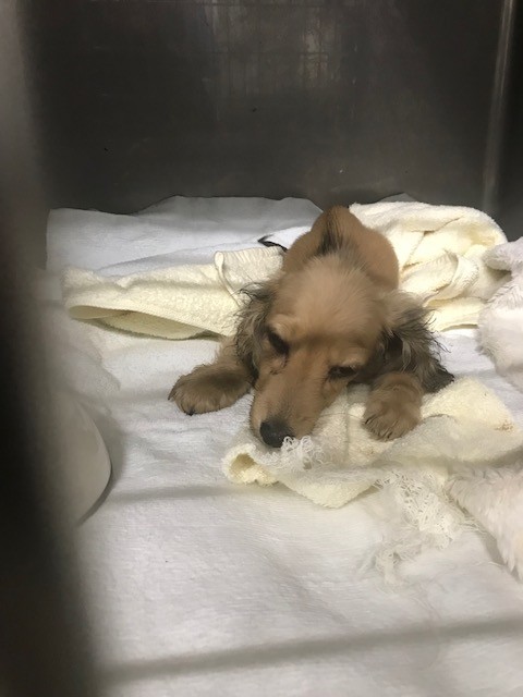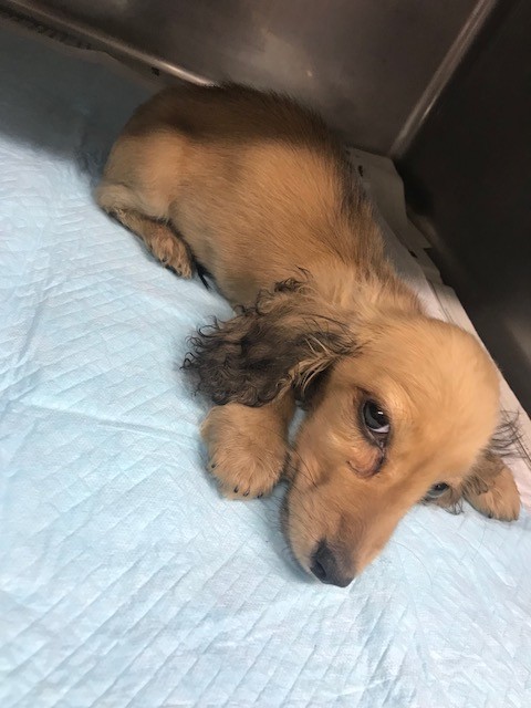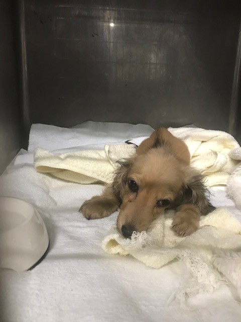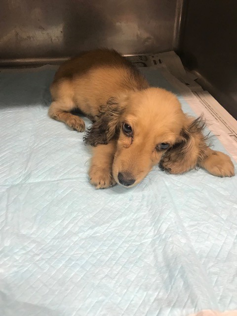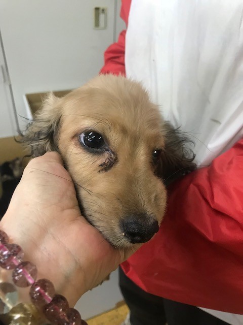 昨日 レスキューに行った時 箱の中で横たわって居た ダックスの子犬が居ました、
