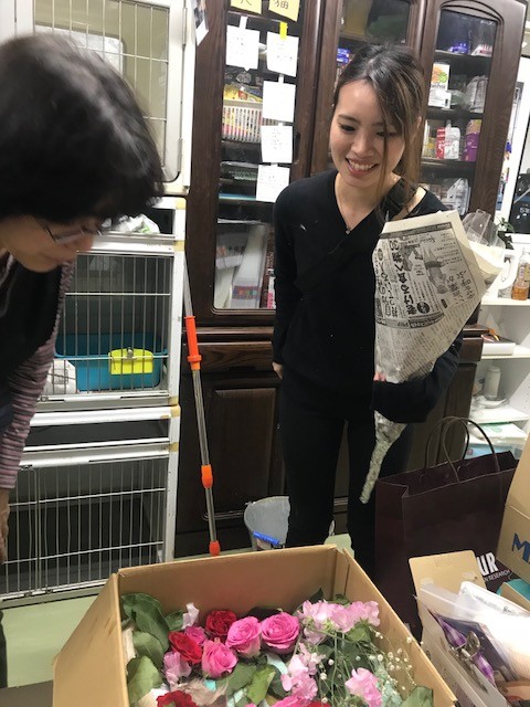 作業が終わってスタッフさんがロミオにお花を買って来てくれました。