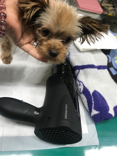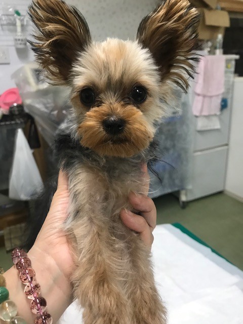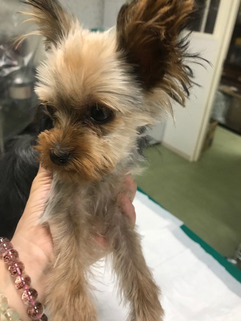 夜ですが モンシャンの ヨーキーちゃんをシャンプーして 少しカットしてみました、