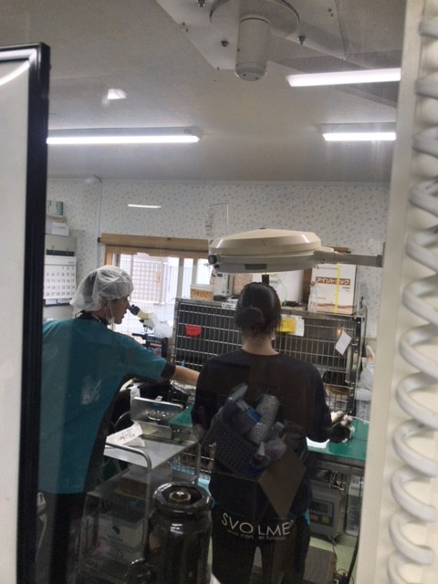 シェルターの診療室で 先生の助手をしてくれたのは ボランティアさんのお嬢さんです、トリマー、ドックトレーニングもしています。