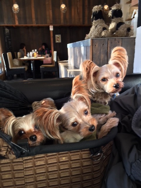 車に乗っている間も、カフェやお買い物中もメルエル同様お利口で過ごしています。