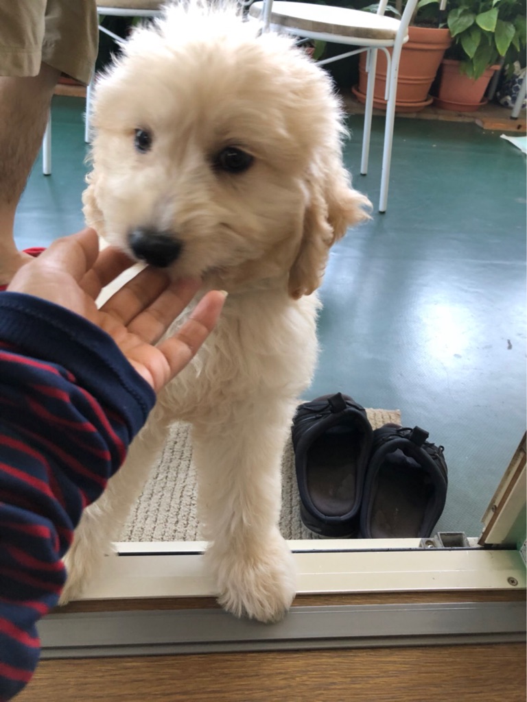 胸が扁平で漏斗胸、 股関節が奇形の ゴールデンドゥードルの子犬は  協力ボランティアさんのお陰で 最高に優しい家族が見つかりました。