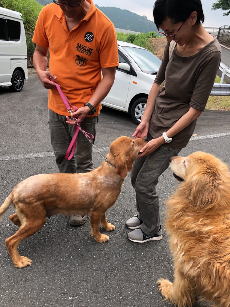 子供と離されたばかりのゴールデンのお母さんは  老犬ホームを経営している ご夫婦が預かってくださって居ます。