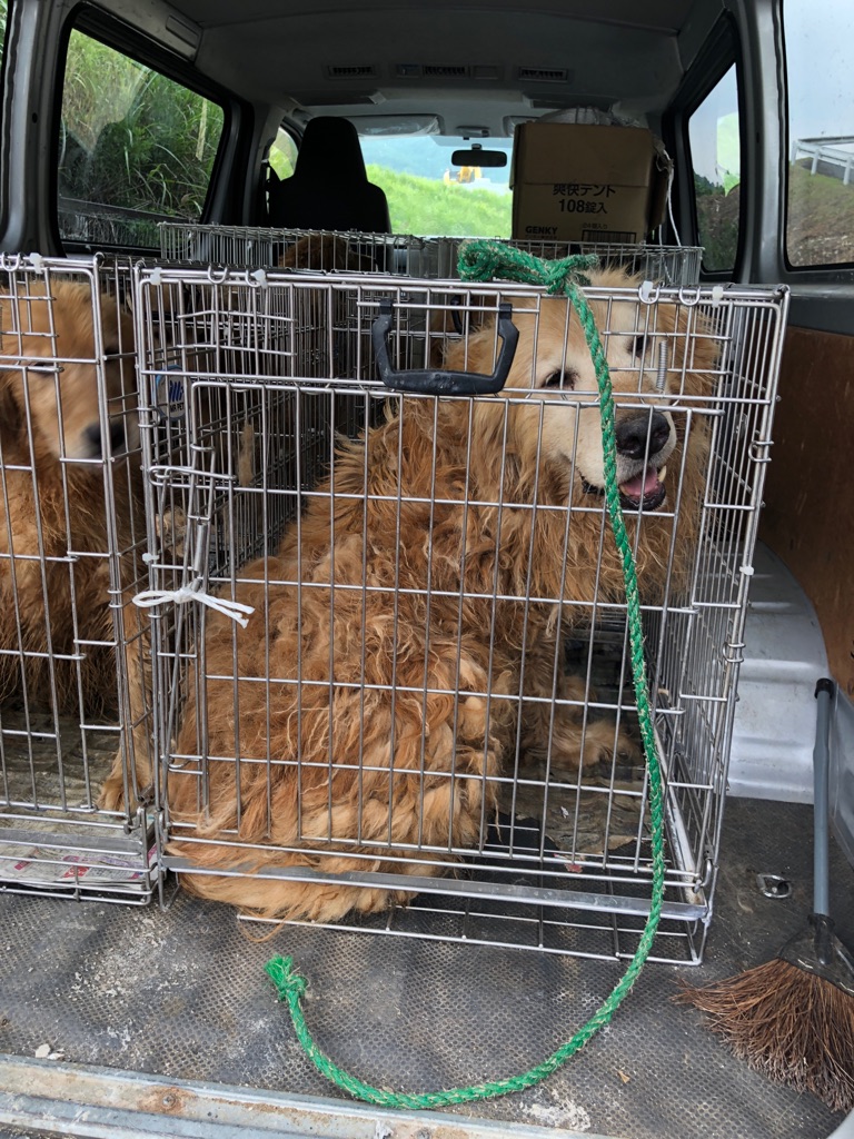 下の3枚はレスキュー時の画像です、こんな姿でシェルターに来た ゴールデン達は、