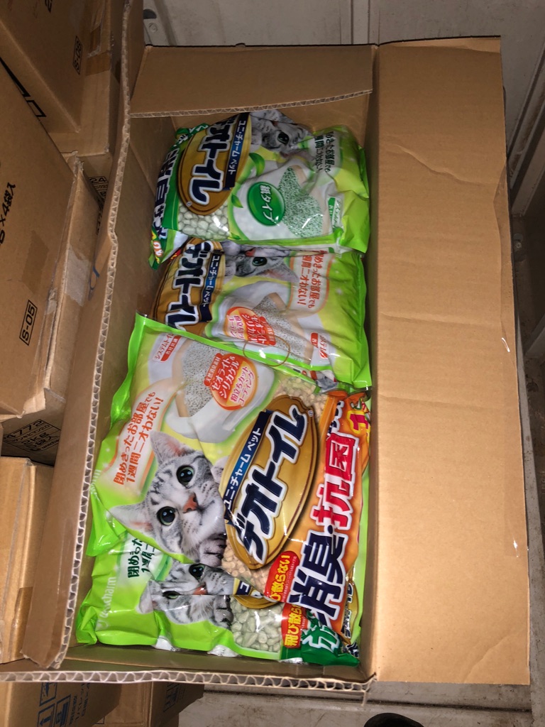 箱を入れ替えて居ますが 中身はみんな猫砂です、 約 一トン 、種類も色々入っているそうです。