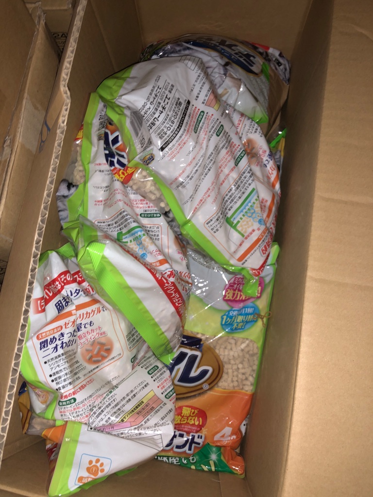 猫砂は 箱が汚れたり 潰れたもので、中身は
