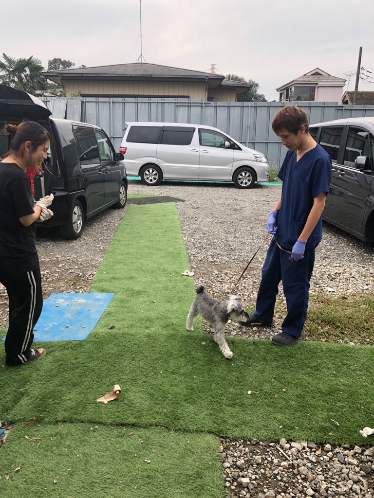 先生と トリマーさんに お世話になり