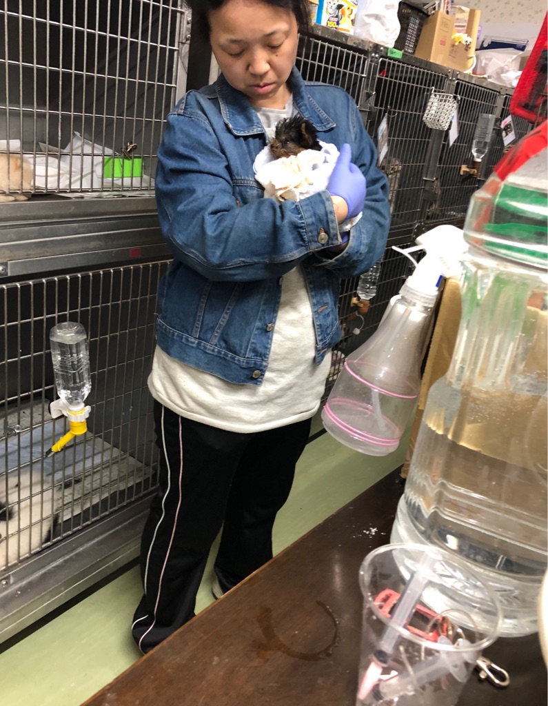 スタッフさんが 交代で 強制給餌をしてくれています。