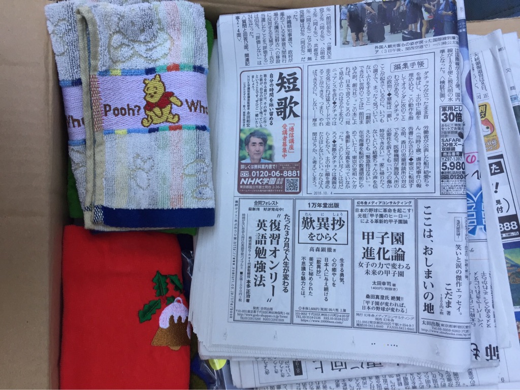 新聞紙 可愛いタオルなど有りがとうございます(o^^o)
