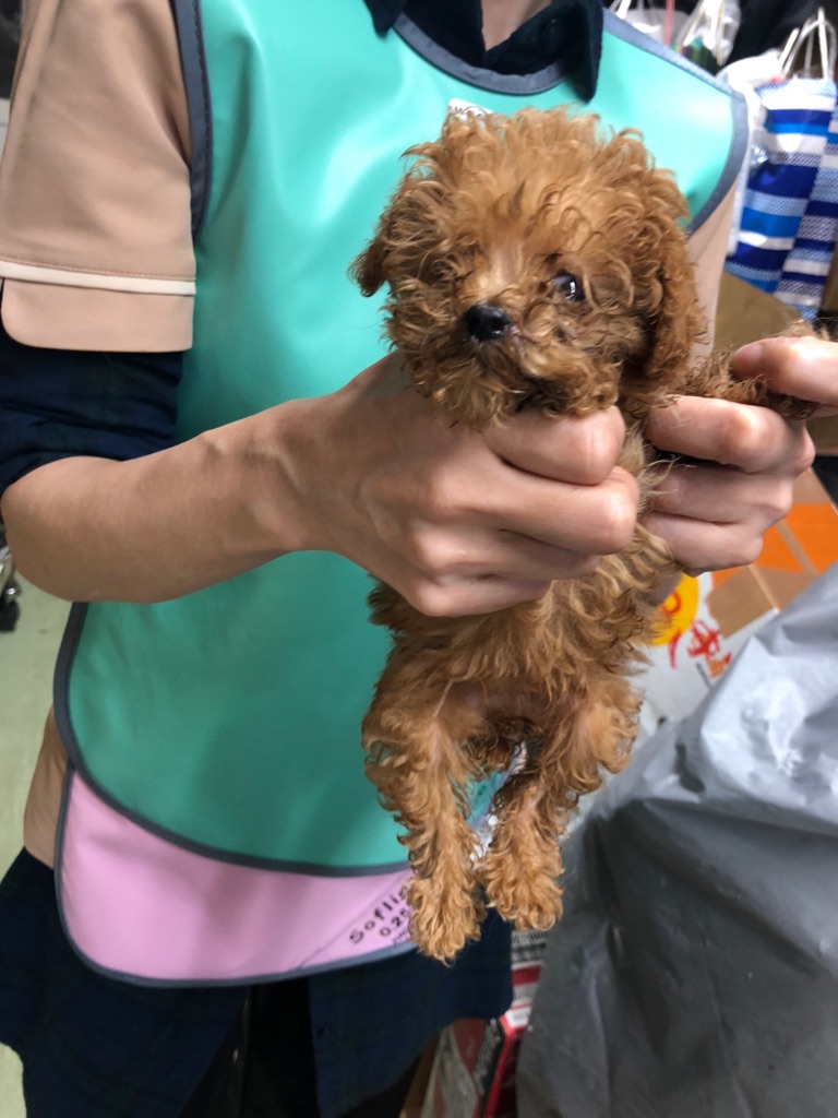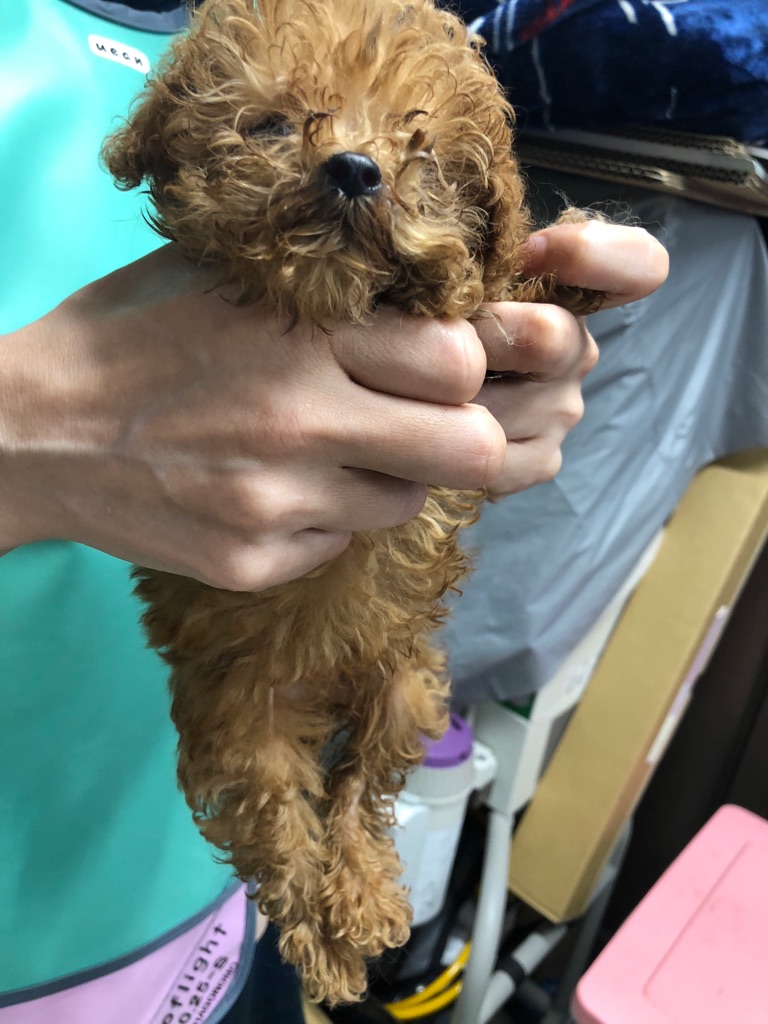 自力で食べられない プードルの赤ちゃん。